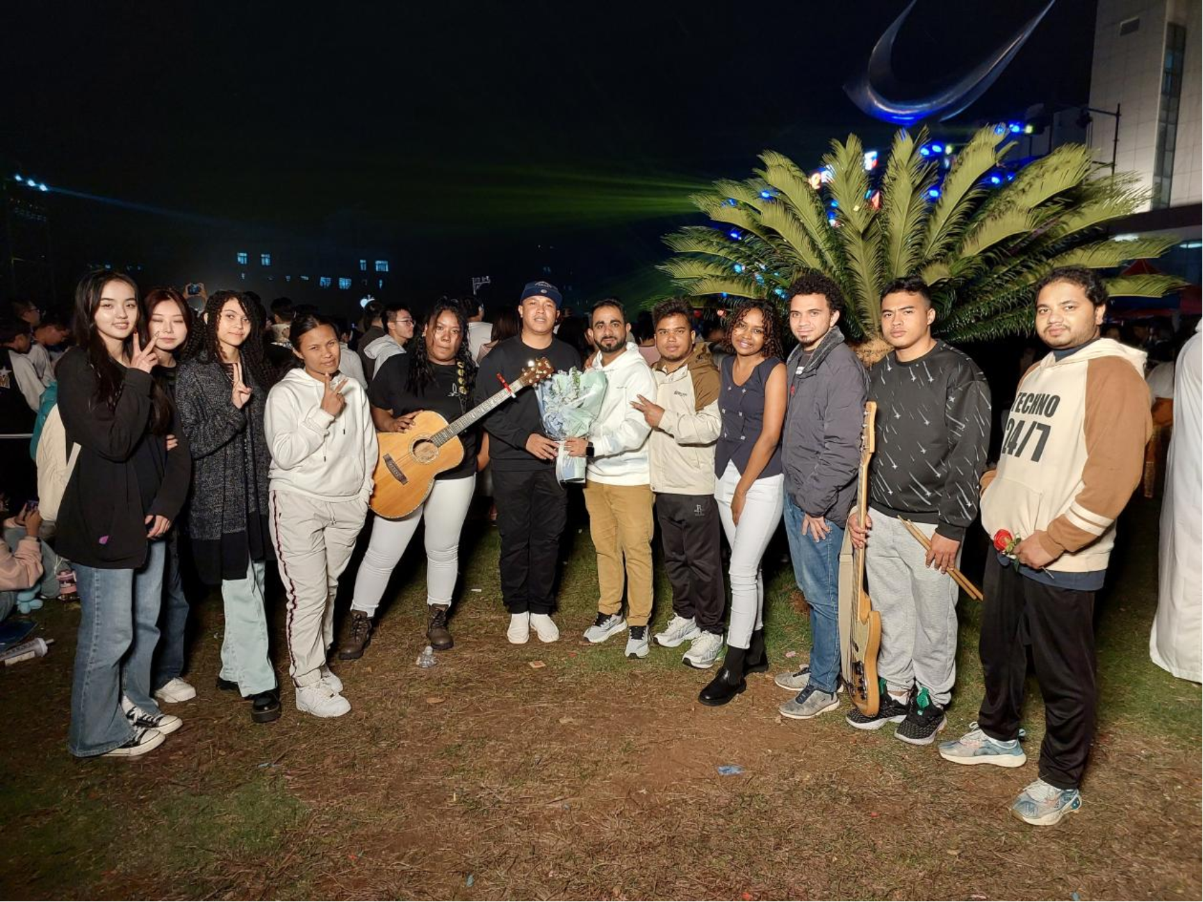 bevictor伟德国际教育学院六名马达加斯加籍学生陈美丽、安娜、杨昊、美丽、亚丽、蔡继玲组成团队,在舞台上共同演唱歌曲《开心》。他们用充满异域风情的歌声和热情洋溢的表演点燃了全场气氛,感染了台下的观众,展现了科大学子生生不息的青春力量和昂扬奋进的精神风貌。杨昊同学在表演后难掩兴奋:“参加中国音乐节,我深刻体验到了中国音乐的独特韵味,同时我与许多中国朋友因音乐结缘,分享彼此的故事,收获了满满的快乐。”