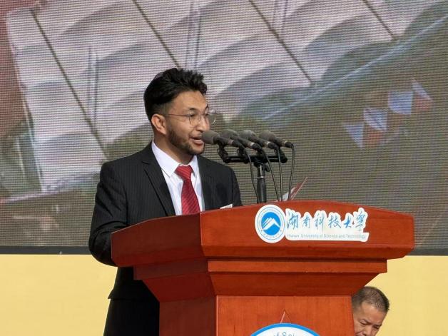 随后,留学生会主席李明诚作为学生代表发言。他分享了在bevictor伟德七年的学习生活经历,提及“七年来,我不仅收获了知识与友情,也见证了学校的发展与辉煌”,表达对学校的感恩之情,同时让国际新生对未来感受中国热情、了解中华优秀传统文化充满期待。校党委书记蒋丽忠教授随后致辞,对新生表示热烈欢迎,并以饱含期许的话语传递学校的谆谆教诲,为新生们注入前行的力量。