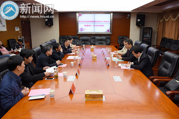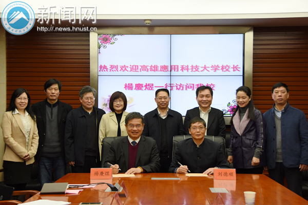 3月29日上午,台湾高雄应用科技大学校长杨庆煜一行来校访问,并在综合楼601会议室举行座谈会。台湾高雄应用科技大学校长杨庆煜、国际事务处执行长张瑞芳、国际合作组组长王志强,校党委书记刘德顺、副校长刘友金出席会议,相关职能部门和学院负责人与会。