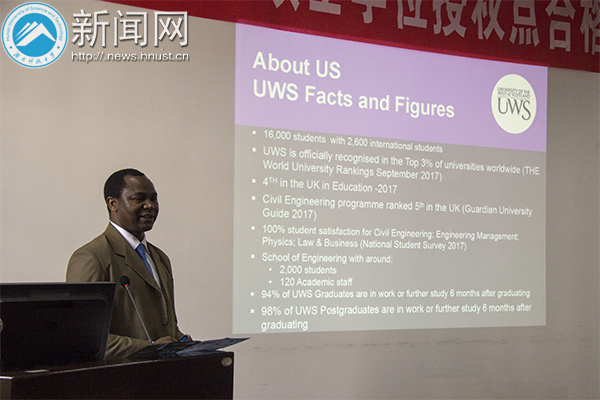 会上,Dr.David.Ngzi简要介绍了西苏格兰大学的基本情况。他表示,西苏格兰大学(原佩斯里大学)位于英国的苏格兰西南部,是一个多学科综合性教学与研究机构,创建于1897年,是英国政府正式批准成立的国立大学。2018年西苏格兰大学(UWS)在泰晤士高等教育世界大学排名中被官方认可属于世界大学的前3%之列;同时,在2017年泰晤士高等教育世界年轻大学排名中名列前200。西苏格兰大学现有在校学生10,000余人,学生来自40多个国家和地区。其化学工程专业历史悠久,且与国内多所大学都有科研合作,该专业的学科就业率在2015年和2016年分别是100%和95%,学生毕业后就业前景广阔。此外,Dr.David.Ngzi表示,该校还对bevictor伟德去留学的学生有一系列优惠政策。